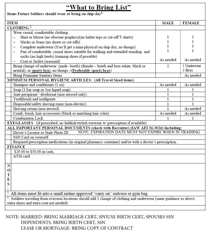 Learn the process for shipping to Basic Combat Training (BCT) and Advanced Individual Training (AIT) to make sure you are ready on Ship-Day. This page breaks down the shipping process into a timeline so that you will know what to expect.